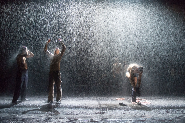 Genau in dem Moment, als die jungen Frauen auf der Bühne mit den Fingern Regengeräusche auf den Boden klopfen und gemeinsam unter dem roten Regenschirm Schutz suchen, beginnt auch der Gewitterregen auf das Dach des Sprechwerks zu trommeln. Das Hamburger Wetter unterstrich mit perfektem Timing die Dramatik der Premiere von „Through childlike eyes“.